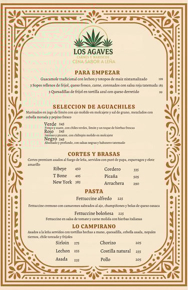 Ofrecemos auténtica cocina mexicana con sabores a la leña, destacando carnes y mariscos frescos.